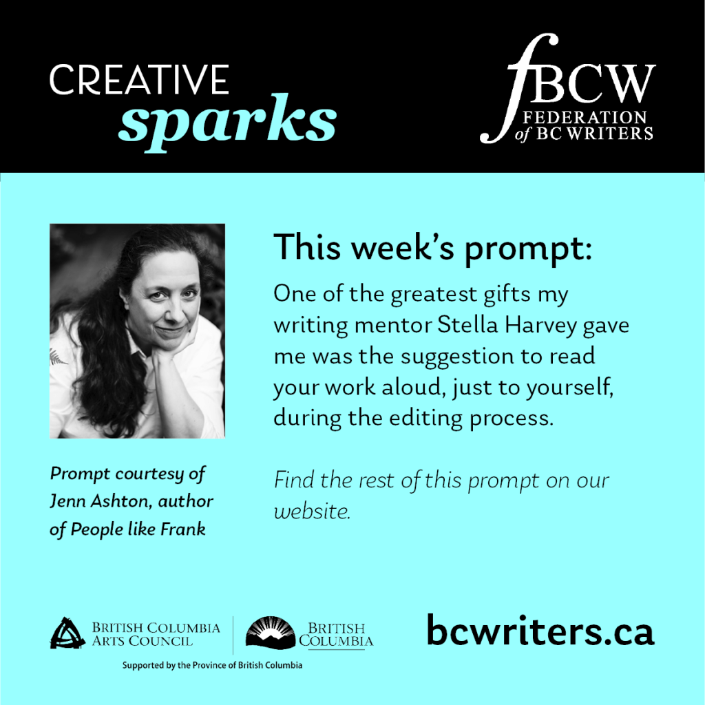 One of the greatest gifts my writing mentor Stella Harvey gave me was the suggestion to read your work aloud, just to yourself, during the editing process. Taking your work off the page and into another realm will help you quickly see errors and help you write and revise realistic dialogue. Printing your work and holding it in your hand can also help with the revision process; anything you can do to change your initial format will help you see things differently and move your writing forward.